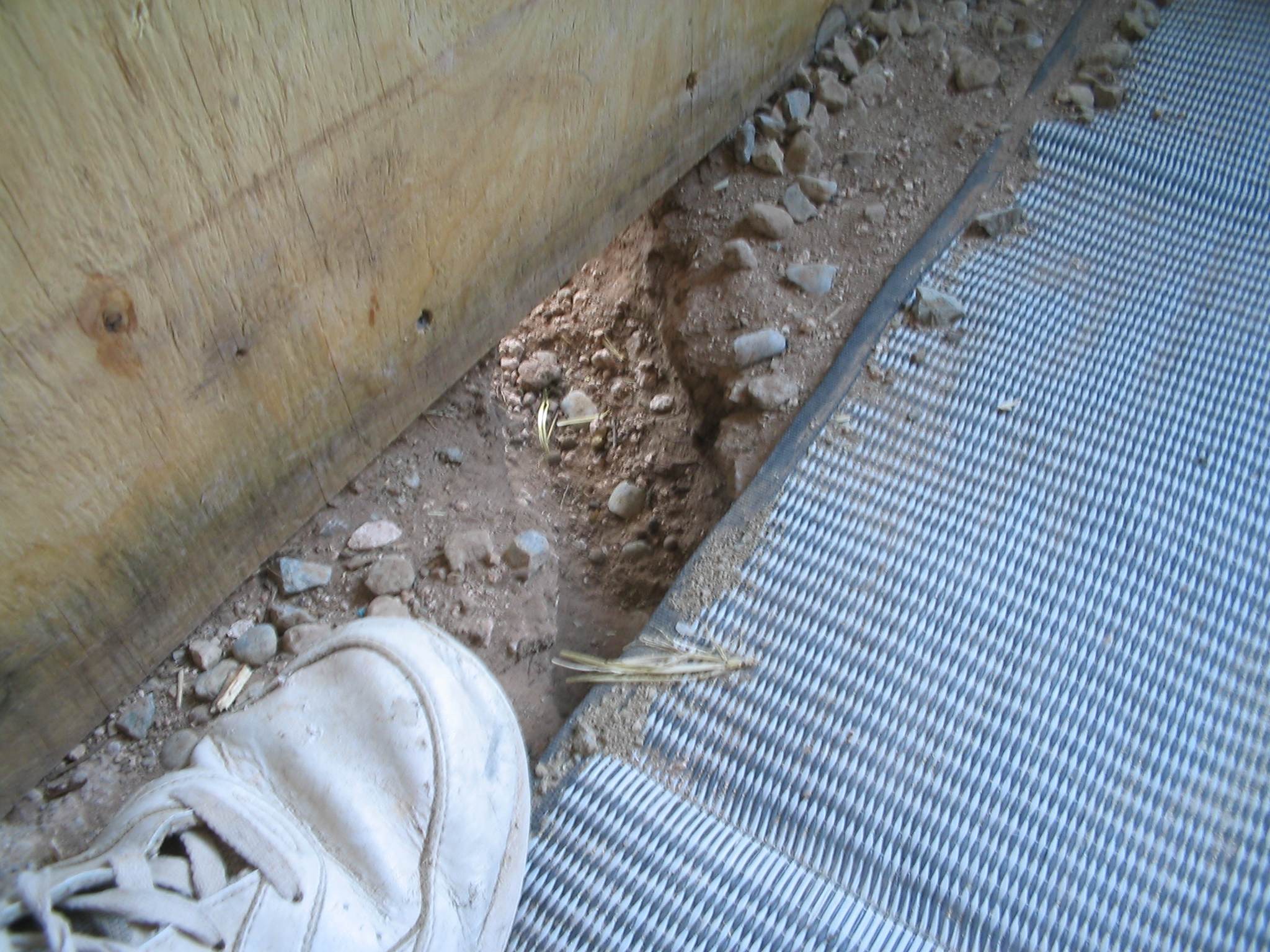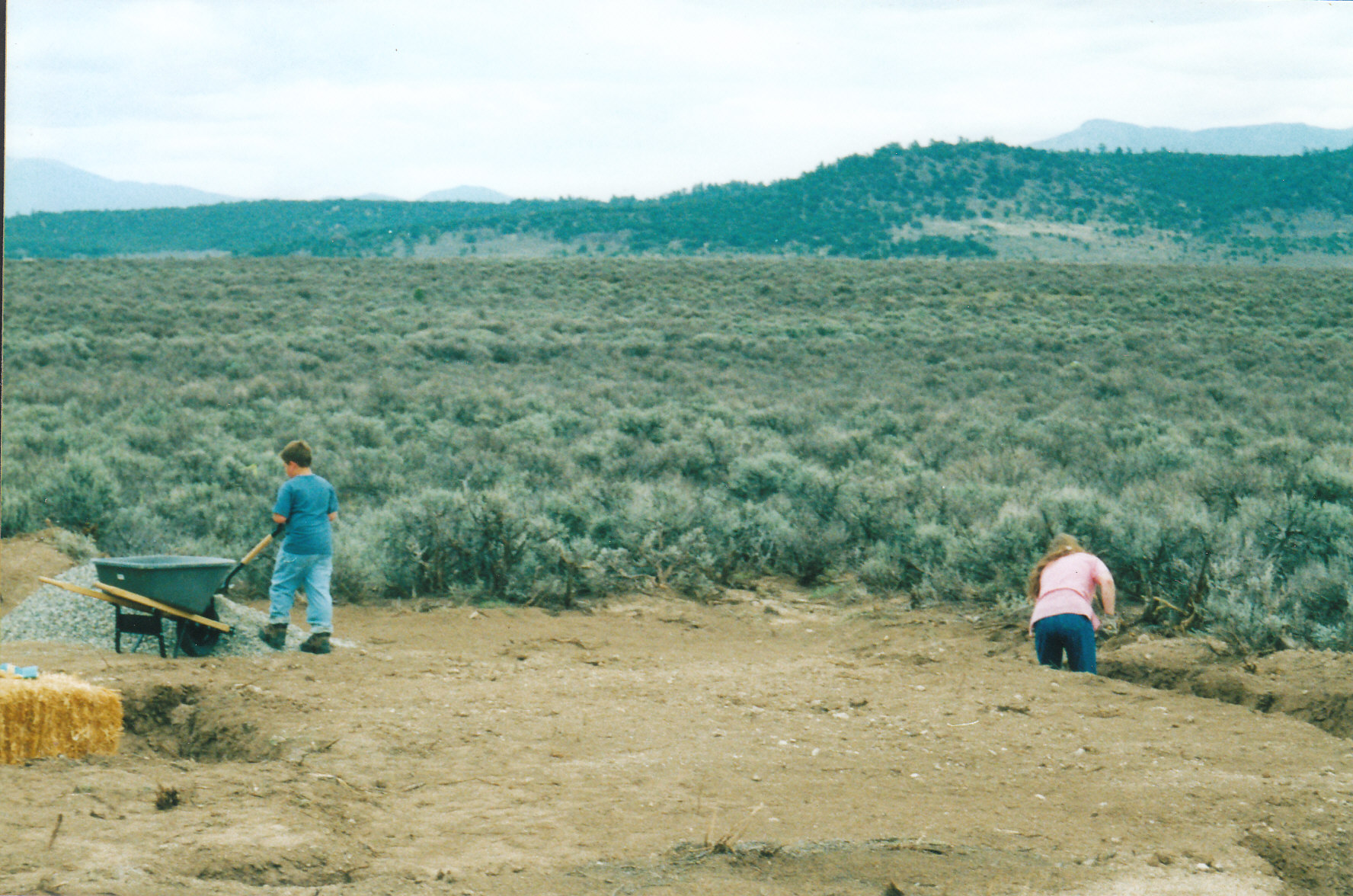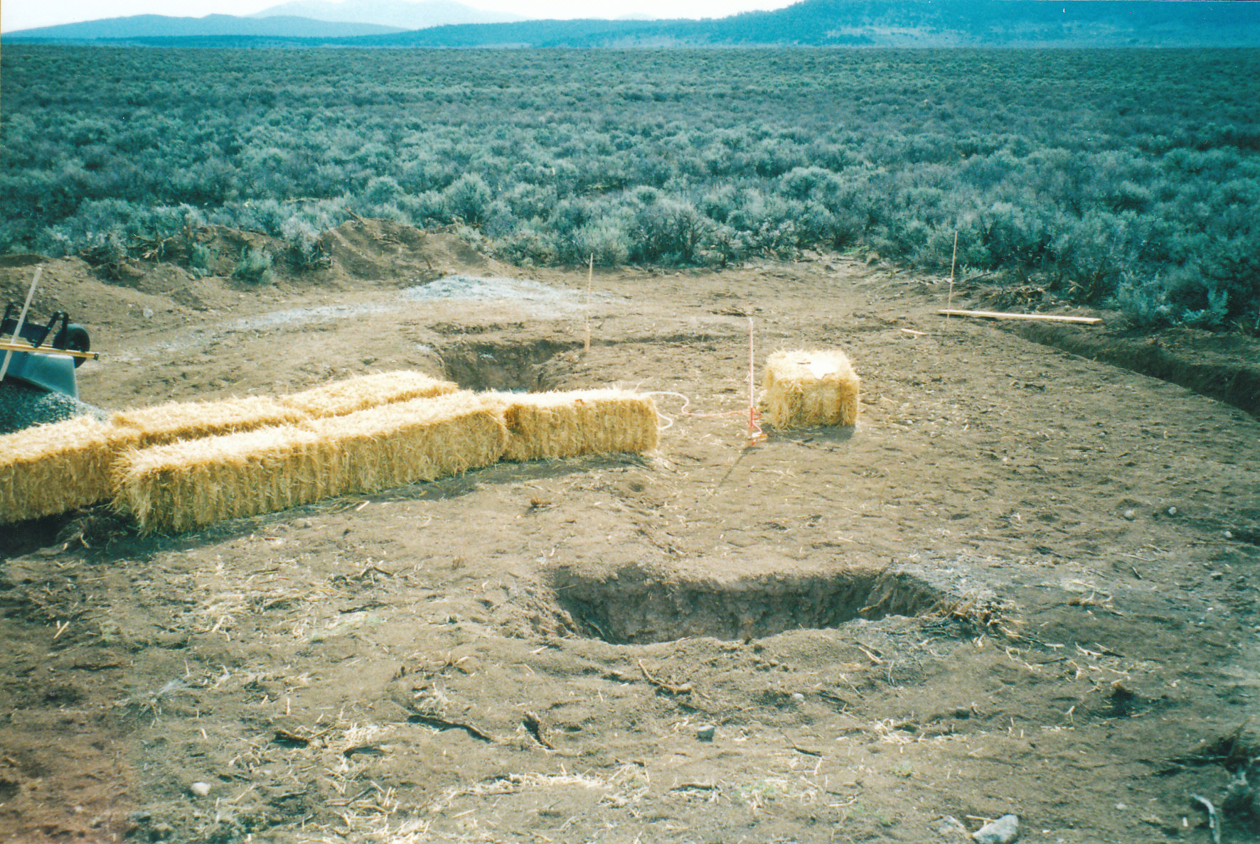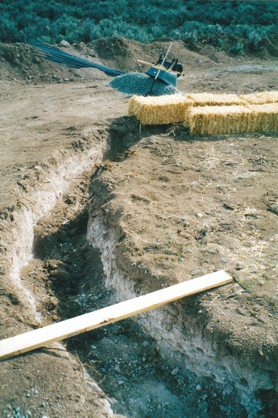 I found a guy from town named Joe with a backhoe for hire.He improved the “road” from the highway, really more of a rough firebreak defining the western edge of the property, featuring large, oil-pan puncturing rocks and ragged run-off ruts, and then carved a road down to the main house site and trenched out the sandy clay for the concrete foundation.