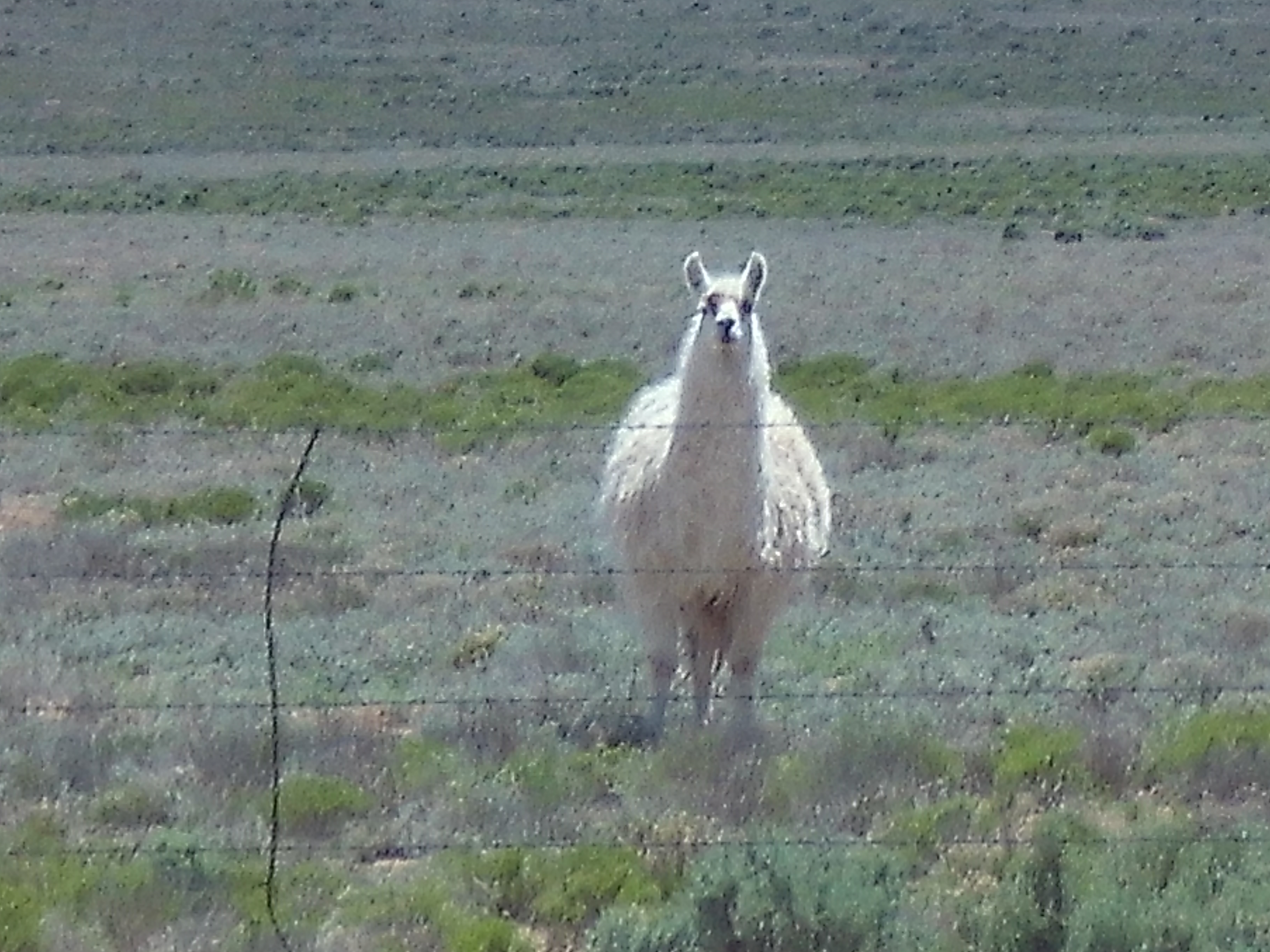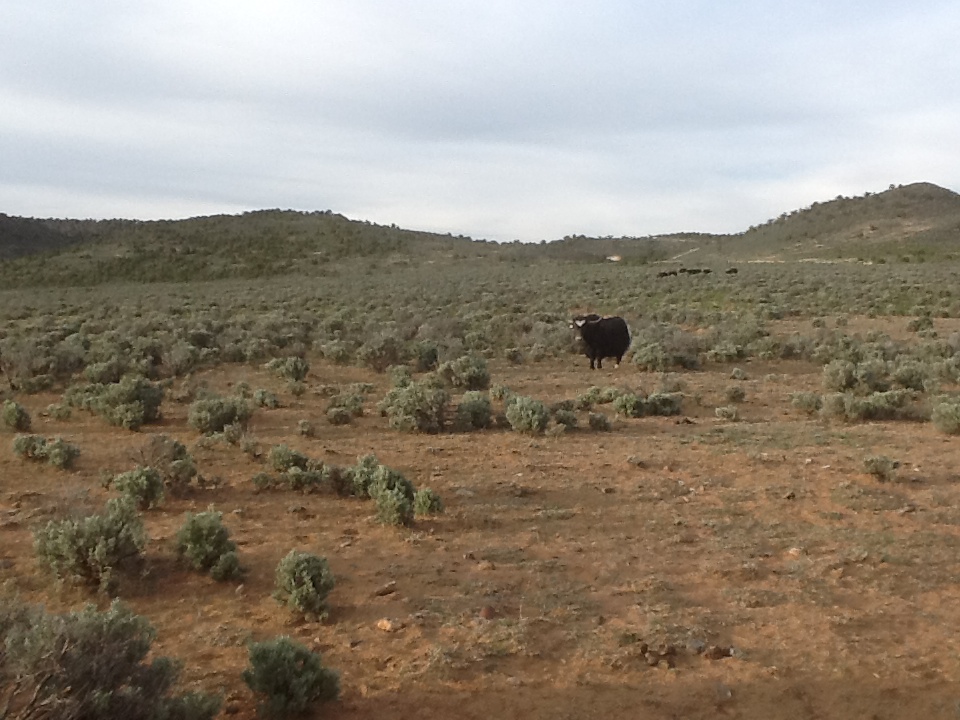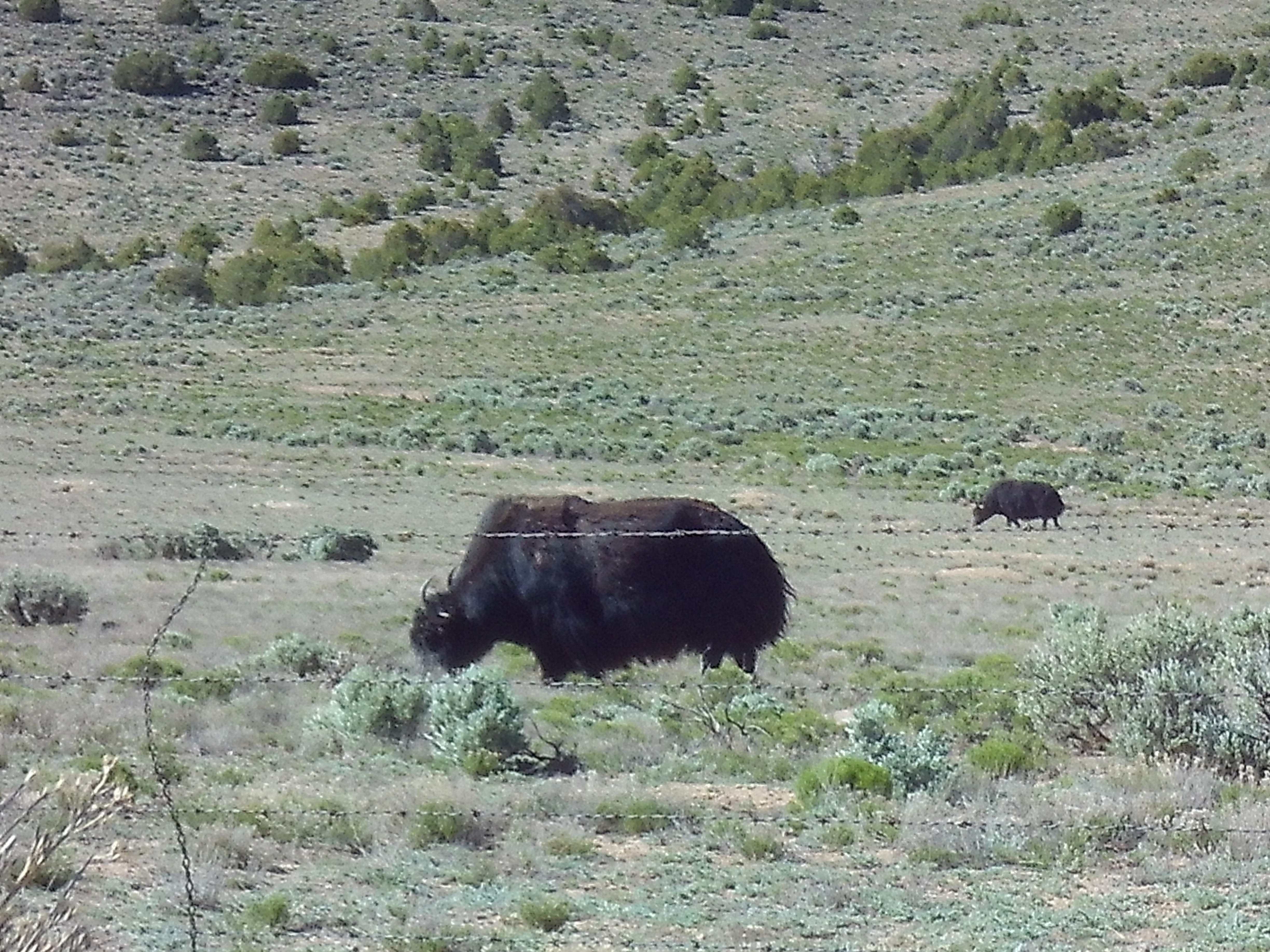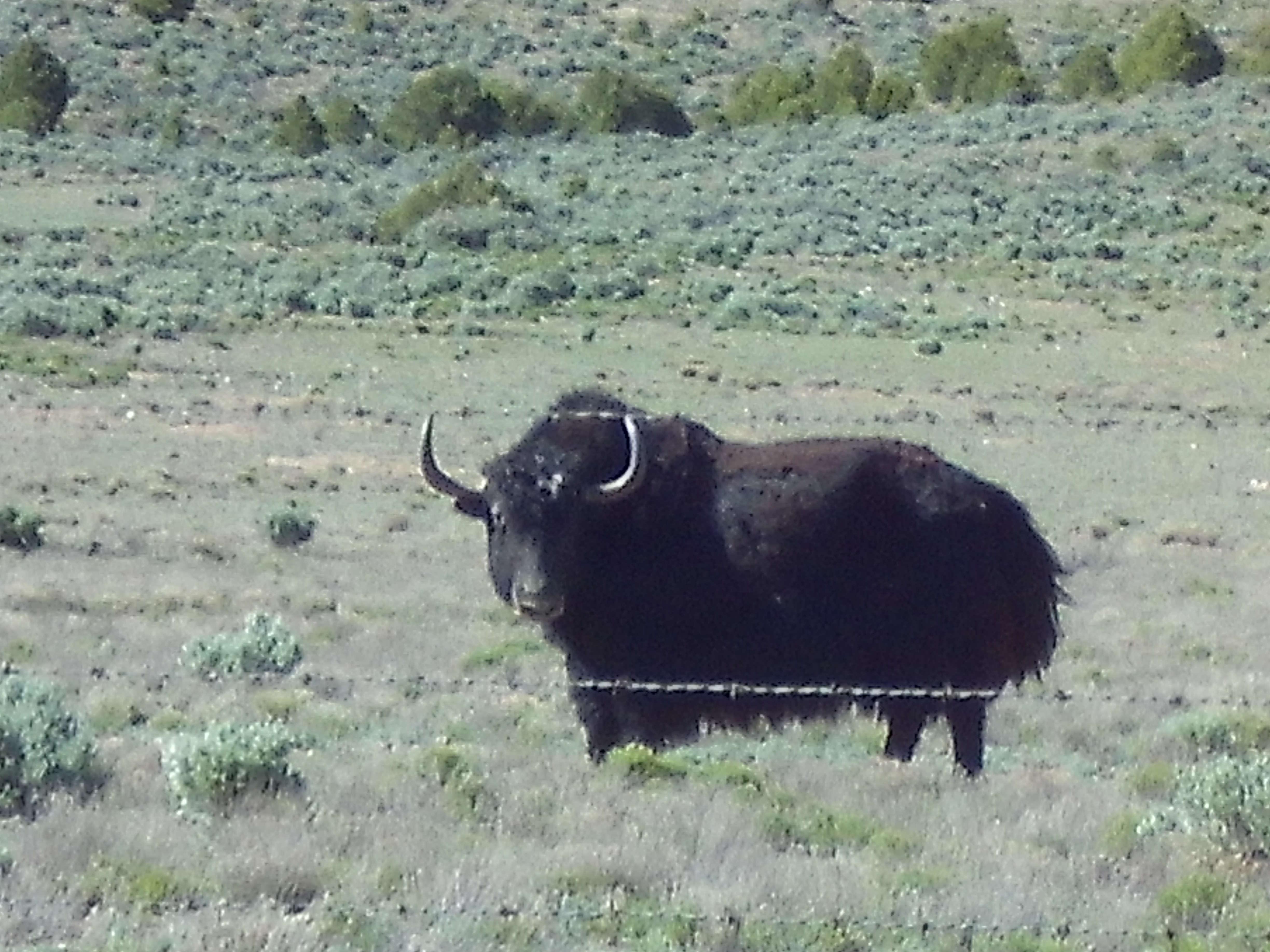 She had just run in from out back, shaking and whining, looking at the window where the driveway is, and barking excitedly. Her behavior was “classic Lassie”, so I got up to look out. Sure enough, a herd of about fifteen or twenty head were just arriving from the north, several of them up to my car already, approaching the electric fence gate! Sophie was in the back yard barking.