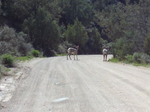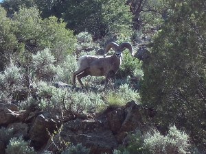 I had a delightful encounter with some bighorn sheep on the road down by the river near the John Dunn Bridge. One came jumping down right in front of me onto the dirt road from the steep canyon walls, followed by another.
