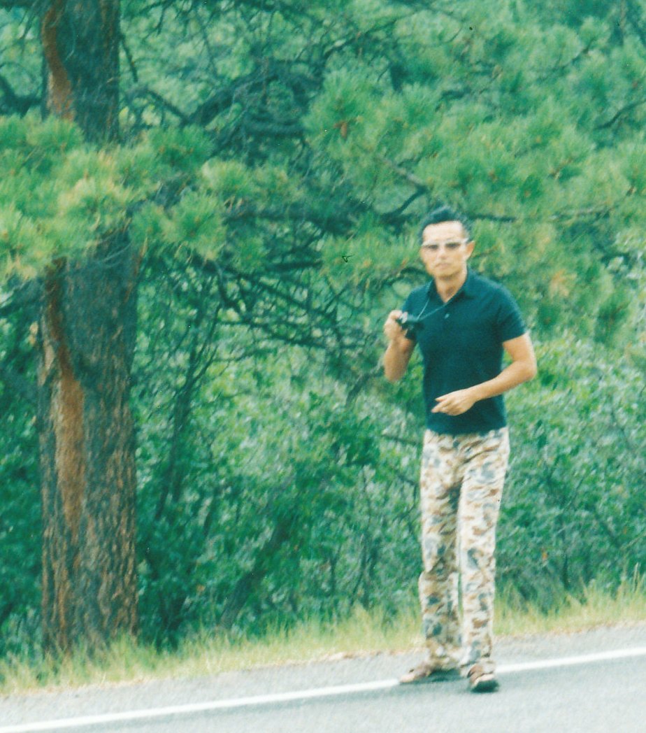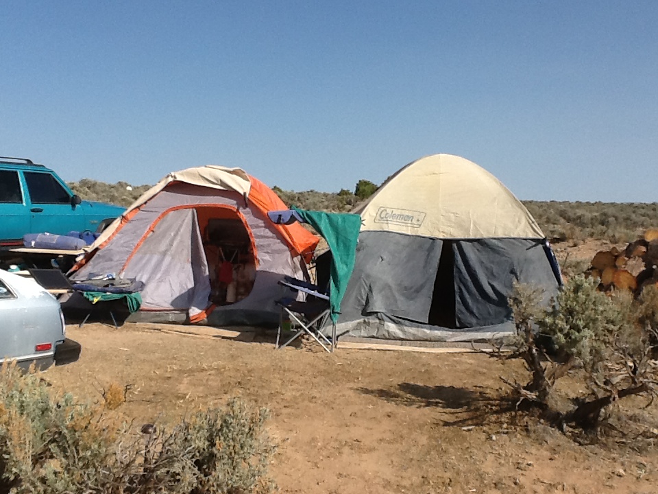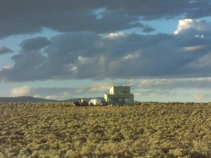 Standing in the middle of the room, we were looking up at the arcing dome with the clear plastic window in the center, when a sudden motion on the floor caught my eye. A small rattlesnake was meandering out from under the bed and right past unsuspecting Nobu’s besandaled foot! We both leapt back as it slithered for cover at the wall, only to find it impenetrable, and curved. While it sought a way out, I grabbed an empty ice chest and scooped the frightened thing in and slammed the lid. Then I hiked way out in the brush and set it free, with an admonition to never return. (not sure if that was worth much)