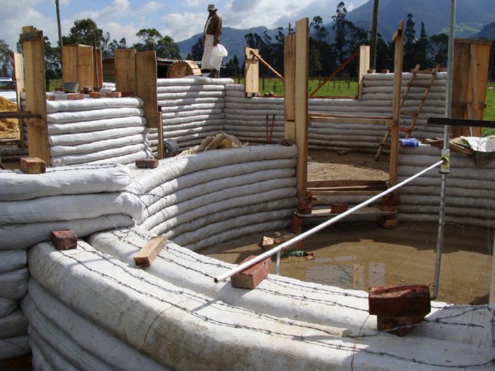 They had imagined coming out to do the “fun” stacking part where you immediately get the sense of a dwelling. What they got was hot summer days in merciless sun lugging heavy bales from the stack to the site, gasping from the elevation, and staking them into the hard clay with lengths of rebar and a sledge hammer. (Luckily the days were usually cut short by a passing monsoon thunderstorm.)