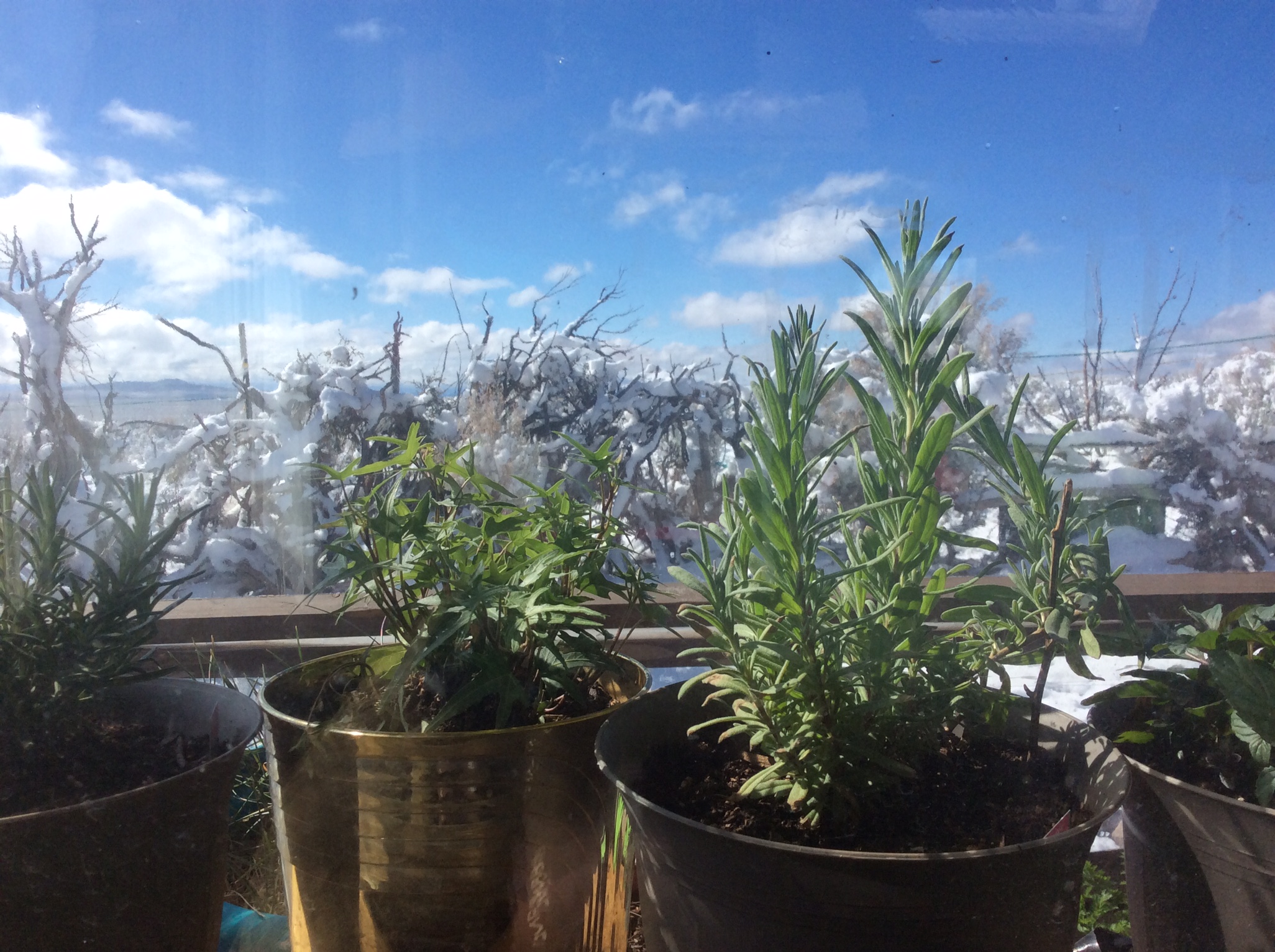 The walipini served well until it got too cold, when I would cover the glass with a mylar insulation sheet at night. But then the snows came and covered the glass, blocking the light and warmth, so the plants had to be moved into the sunroom until spring. Once it warmed up again, I planted starts in little planter cups in the walipini, but too early, unfortunately, as the freeze held through May and the monsoons came late. Many of the sprouts outgrew their containers and languished waiting to be transplanted into the gully garden.