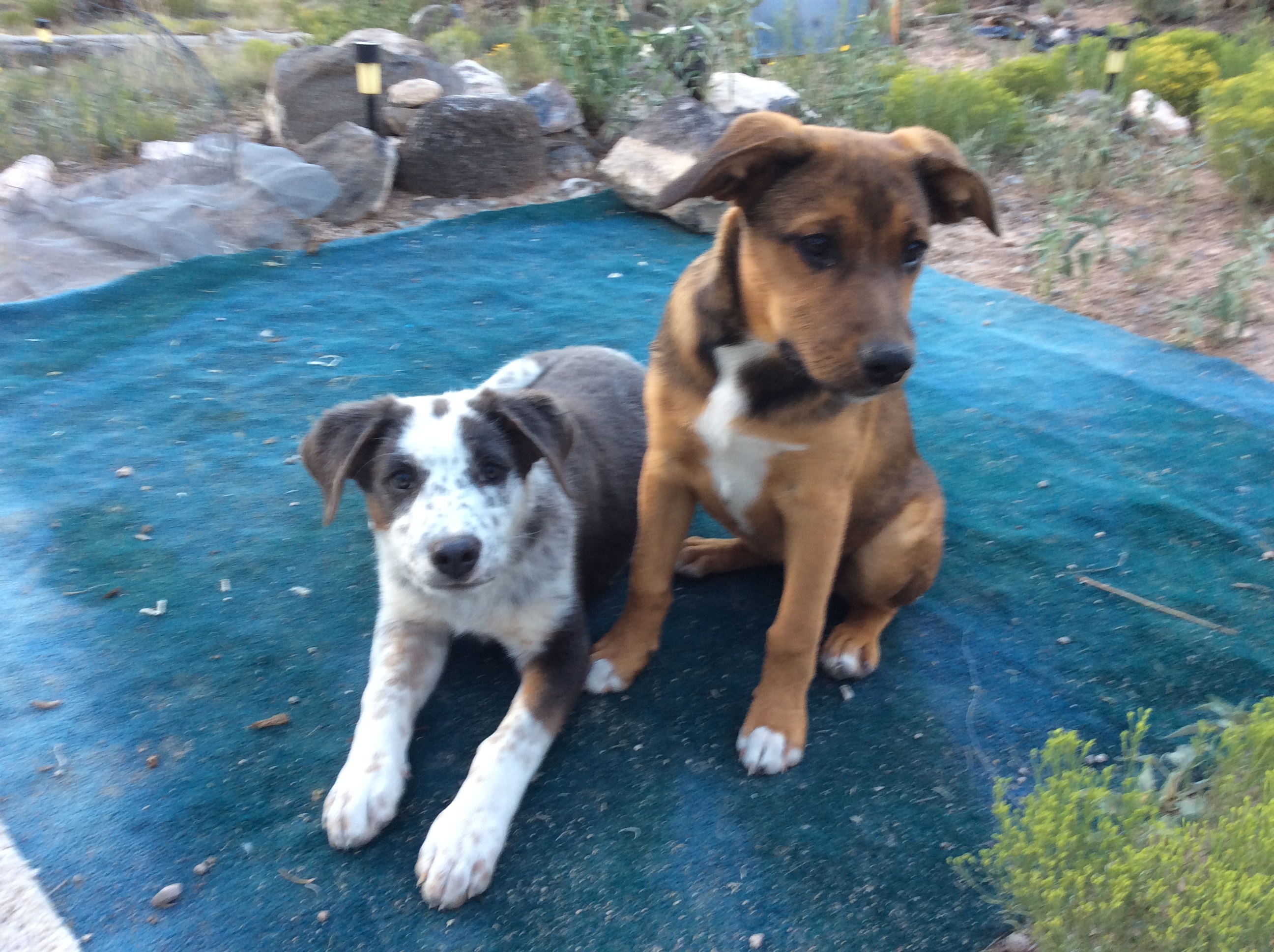 April and Sophie turned one year old on April 21 and are full grown now. While they are physically adult, their puppy shenanigans have scarcely abated and hole digging and general yard destruction is still a problem. It’ll probably be another year before they mellow out. Patience.