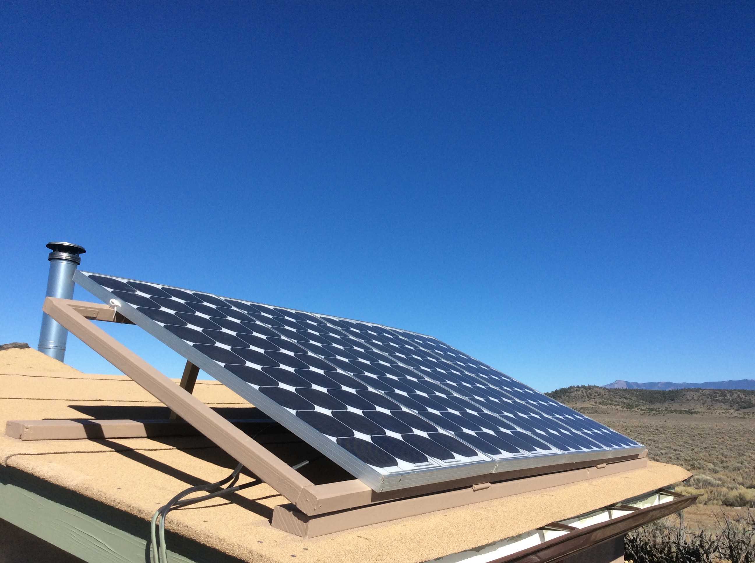 The solar panels on the roof are now on a hinged rack so I can adjust them to face the winter sun better. I have had no end of difficulties with the power systems since I got back.
