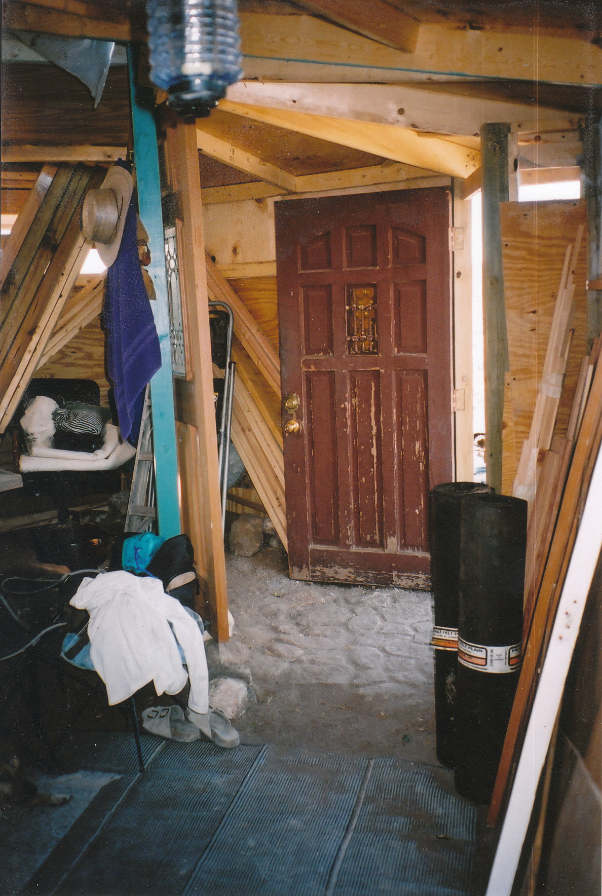 Now that there was a door, suddenly the bathhouse seemed like the more secure space, and more effective at keeping out the wind and other intruders and we began to spend more time inside, eventually sometimes even sleeping in there.