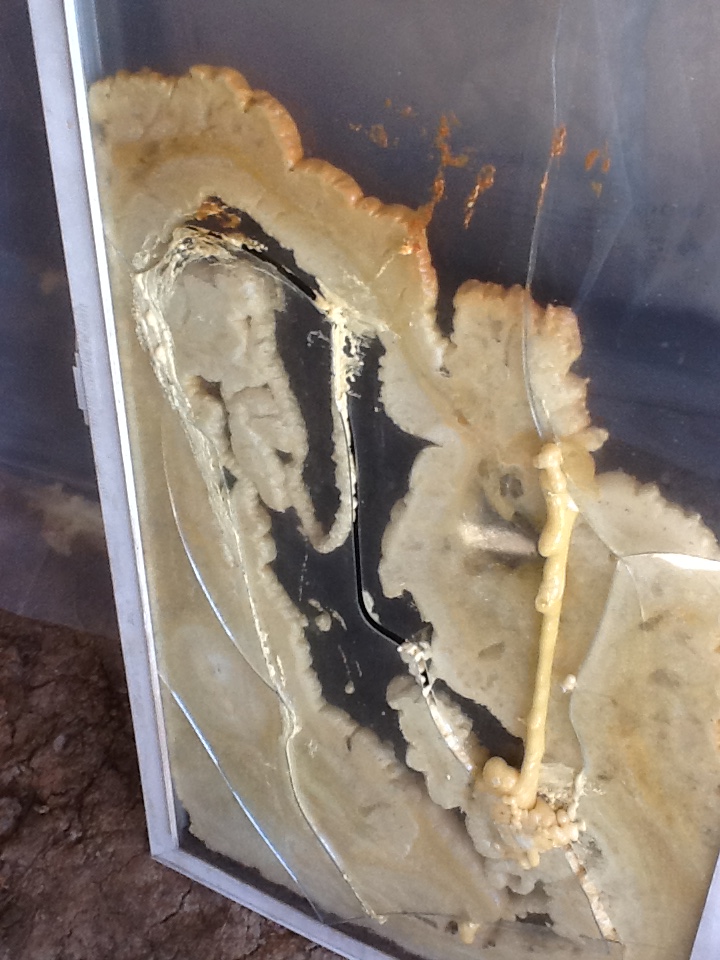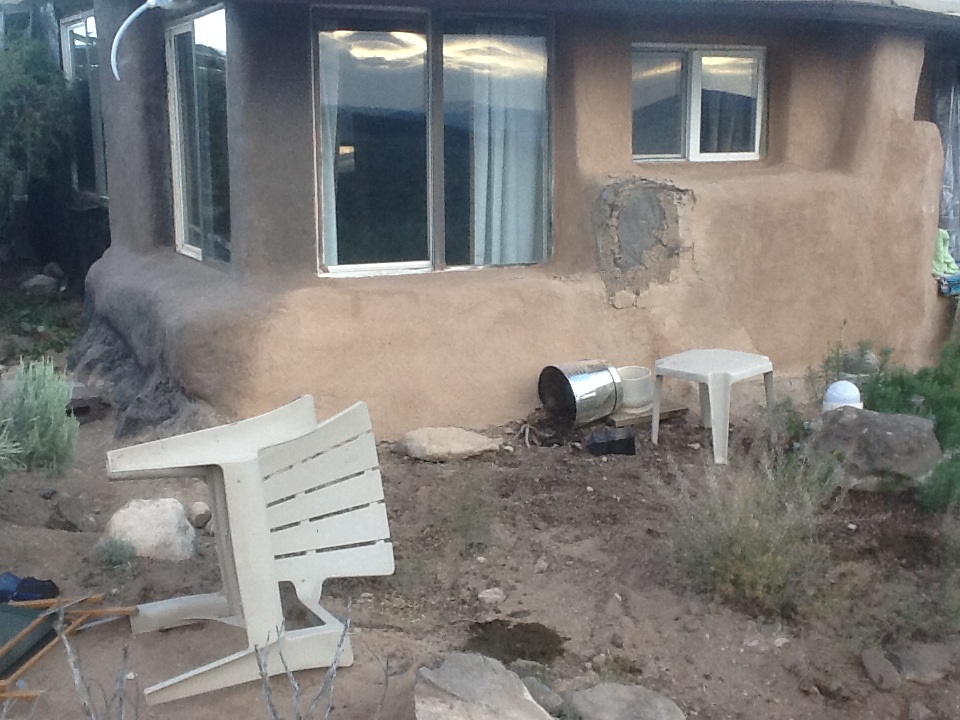 A word about composting toilets, though. I was super grateful for it this winter. I just can’t imagine trudging through the snow in the dark or digging a latrine in snow covered, frozen soil and sweeping the snow off the frozen seat and dropping trou in the wind! However, I have learned that the composting action shuts down below fifty degrees. Mine is the non-electric model and recessed into the concrete floor section so it gets cold. Plus, I was gone a lot during previous winters so the house got really cold. A certain moisture content and temperature must be maintained for the microbes to stay active and do their job. Also the liquid can accumulate sometimes, stifling the aerobic bacteria. (I use a pee bottle at night to avoid adding additional liquid to the mix, a convenience of being male) I DO have a solar powered fan in the vent pipe which helps to remove methane and moisture when necessary, but the vent system works well without it. (There is never any smell from the toilet.) Also, I didn’t add enough dry mix each time as recommended since the company is in Canada and its local source is 90 miles away in Santa Fe. Result: a heavy clay cylinder, crusted on the drier outside with the peat mix and whatever active microbes there may be, and with a smelly, soggy center where the aerobic bacteria can’t survive.