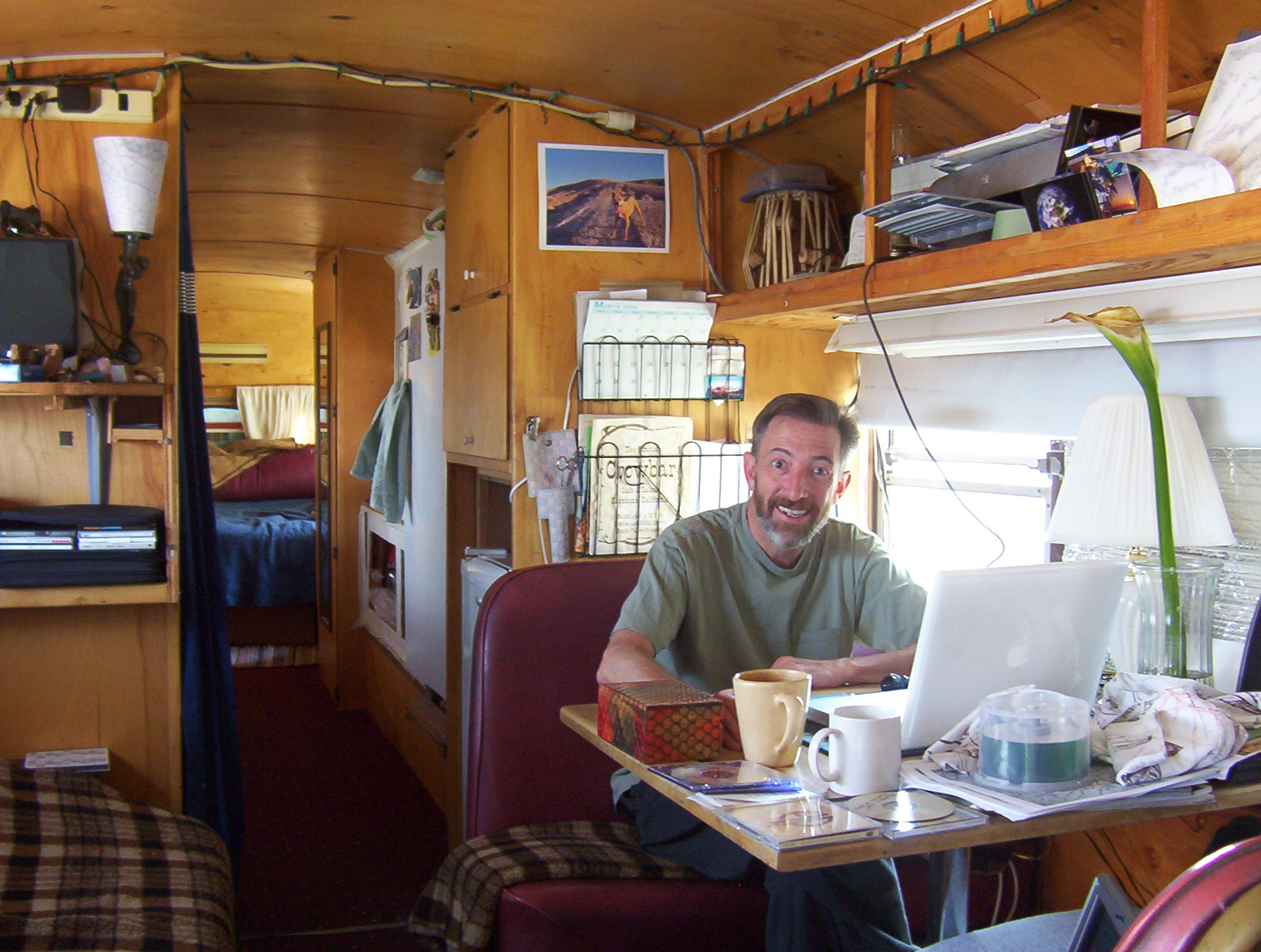 Another civilizing addition is a stylish futon couch that converts to a comfy memory-foam bed. It’s in the narrow east room, which can be isolated for privacy with a drawn drape, and it boasts a TV, stereo, and WiFi, so now I have a comfortable guest space.