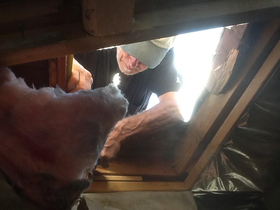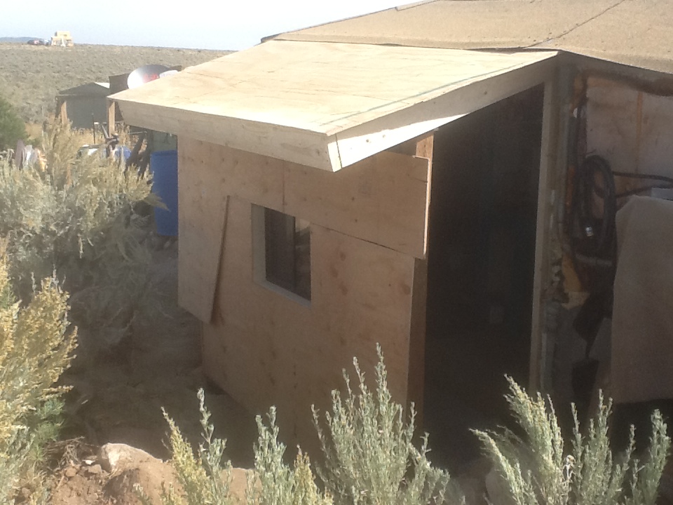Then the inverter quit working. The batteries would charge with the panels but I had no AC. I found an electrician to try to fix the small generator who also came out to work on the inverter. He fiddled with it and changed the grounding and suddenly it worked better than ever. Then, after three years of enduring undercharged batteries, when Ken and I pulled off the plastic covering the west wall to add the room, we discovered that what I had taken to be just a junction box between the solar panels and the charge controller was really a breaker box and one of the two from the panels was tripped! That means I have been operating with only half the panels all this time!
