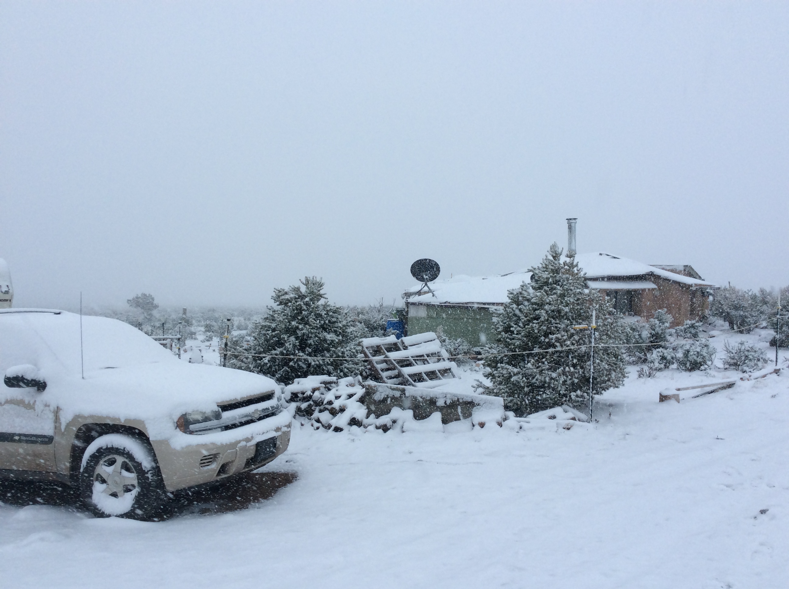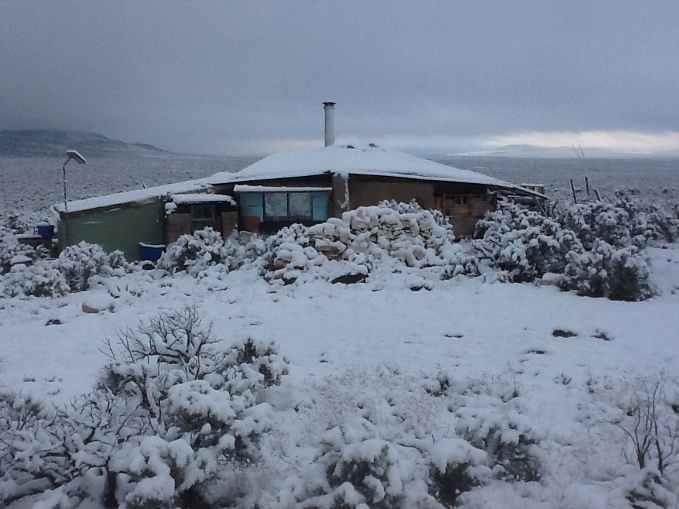 Despite being able to survive the winters here at 7600 feet, the challenges of toting wood and water and shoveling snow have driven me to a decision. I don’t HAVE TO stay here year round. It is perfectly permissible for me to become a snow bird and seek warmer quarters during the more difficult months. To that end, I have begun a search for new property, a smaller plot, somewhere outside of Las Vegas, NV, perhaps. I spent the twelve years prior to this project there with my family and feel a comfortable familiarity with the environs. Though it is FAR too hot there in the summer, the winters are nice and sunny, and it would be good to be near a city again, too. (such as it is) While I enjoy the quiet isolation here, I miss the stimulation, vitality, and range of choices a city has to offer. (Albuquerque, 150 miles away, is the closest thing to a big city for me here…such as it is.)
