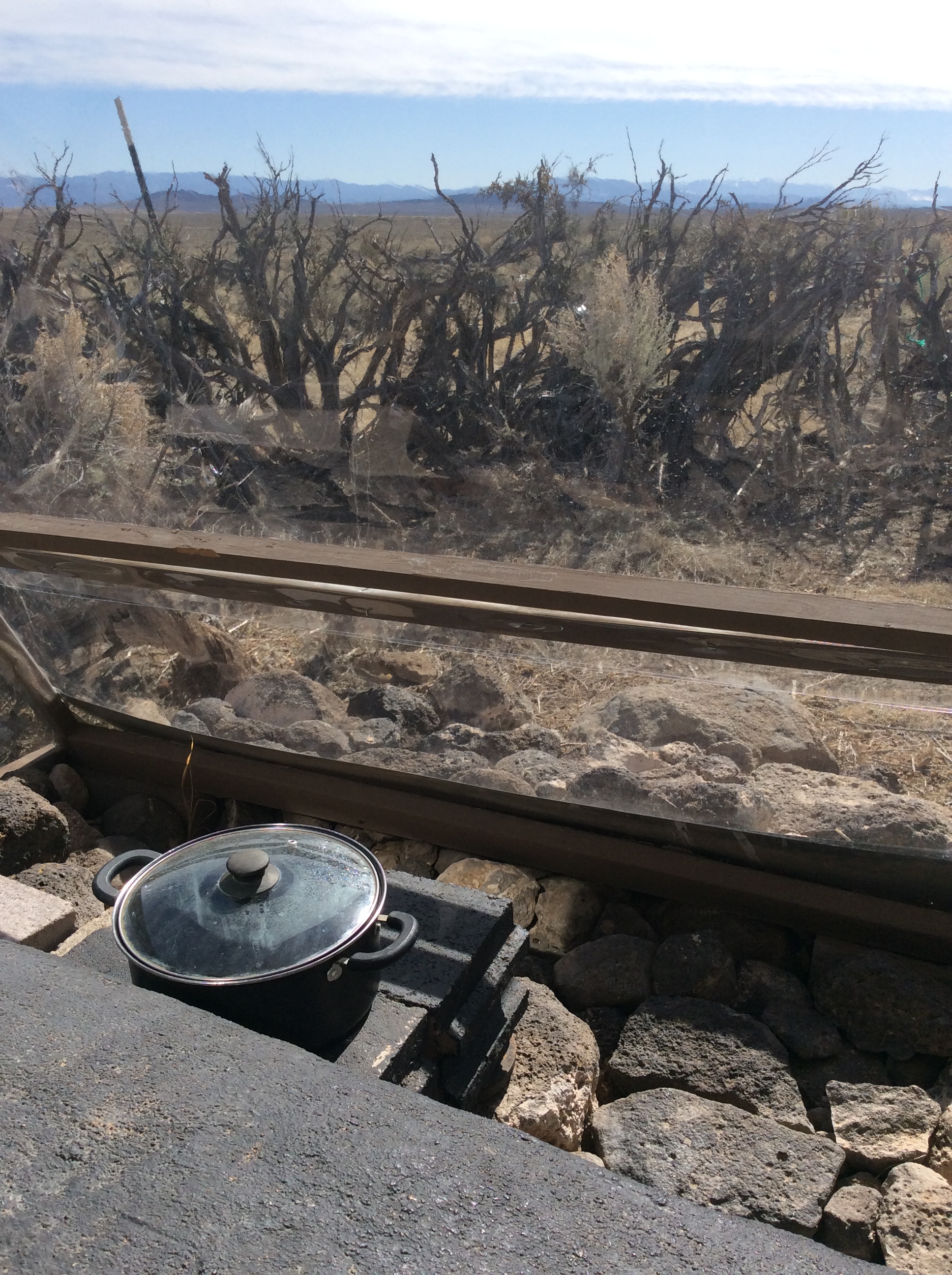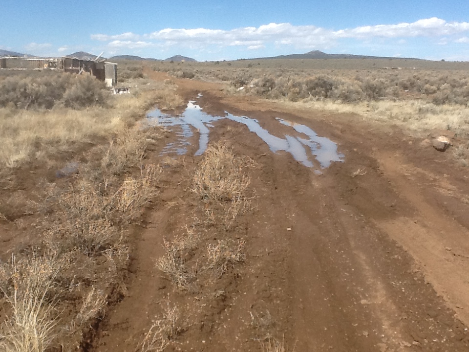 The gully which turned out to be the old road, the stagecoach route, connecting Taos to Tres Piedras where the Chili Line (so named for the primary cargo it carried) narrow gauge railroad connected to Antonito and Denver to the north, and Santa Fe to the south. The train ran from the 1880s until 1941 and the Tres Piedras watering depot was the closest supply connection to Taos. The road from the train crossed my land and then the Rio Grande Gorge, crossing near the hot springs, now called “Stagecoach”. I discovered it cutting a diagonal across my land when I was looking at it from space via Google earth. Cool history. I should walk it with a metal detector sometime. Meanwhile, it’s the latrine.