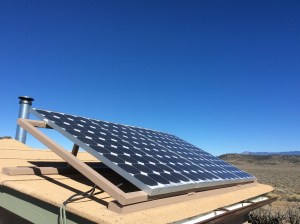 The solar inverter panel, a cumbersome, heavy thing, arrived at the Espanola True Value hardware store just in time for Monroe to help me heft it up to mount on the wall in the “hidden room”. Then they were gone.