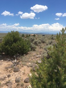 Some miles down the road the development abruptly ended, though, and the wide pristine expanse and opened up again. Taos sacred mountain was directly ahead, on the far side of the Gorge. The sea of featureless sage spread into the broad receding distance where triangular cinder cones stand sentinel, pointing to the vast, encompassing sky. The whole area felt special to me and I made a mental note of it as I drove back to town.