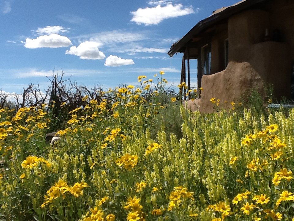 I had a cell phone that only got occasional signal if I stood on a rock about 100 feet up the hill, south of the bath house. Sometimes, especially if there was weather, I could actually receive calls inside and one day I was surprised to receive a call from Nobu, a Tokyo designer friend living in New York with whom I used to work there while doing Toyfair for Mattel. A lifetime big city dweller, he was planning a trip out to see the “Wild West” and wanted to include Taos and Georgia O’Keefe’s Ghost ranch, not far from here.
