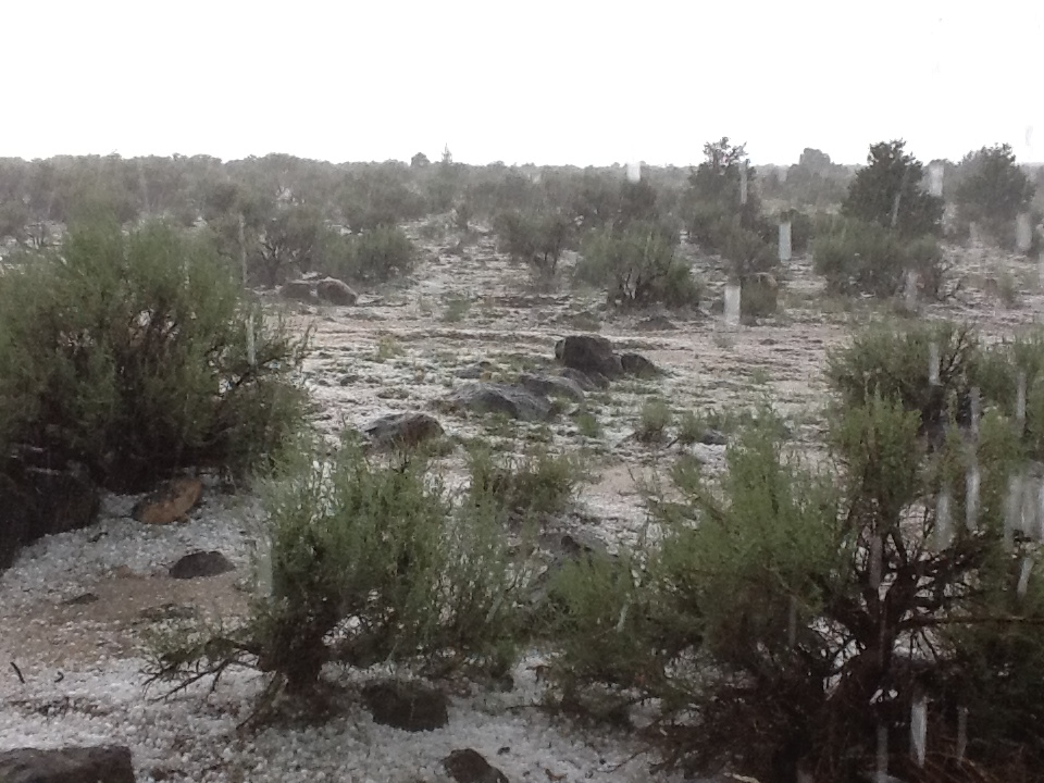 Spring was indecisive this year and finally came late. We had our last snow on May 19, but it continued to be below freezing at night for a couple of weeks, though the days were warming. Then it abruptly slammed into hot, dry, windy June. We only had one suggestion of rain all month, with clear sunny skies and long days in the nineties. The first real monsoon thunderstorm didn’t come until July first, but the monsoonal pattern didn’t assert itself for another ten days. Consequently, seedlings that were coaxed out by the late snow and thaw were burnt, and the hot clay baked dry and blew a dust layer onto everything.